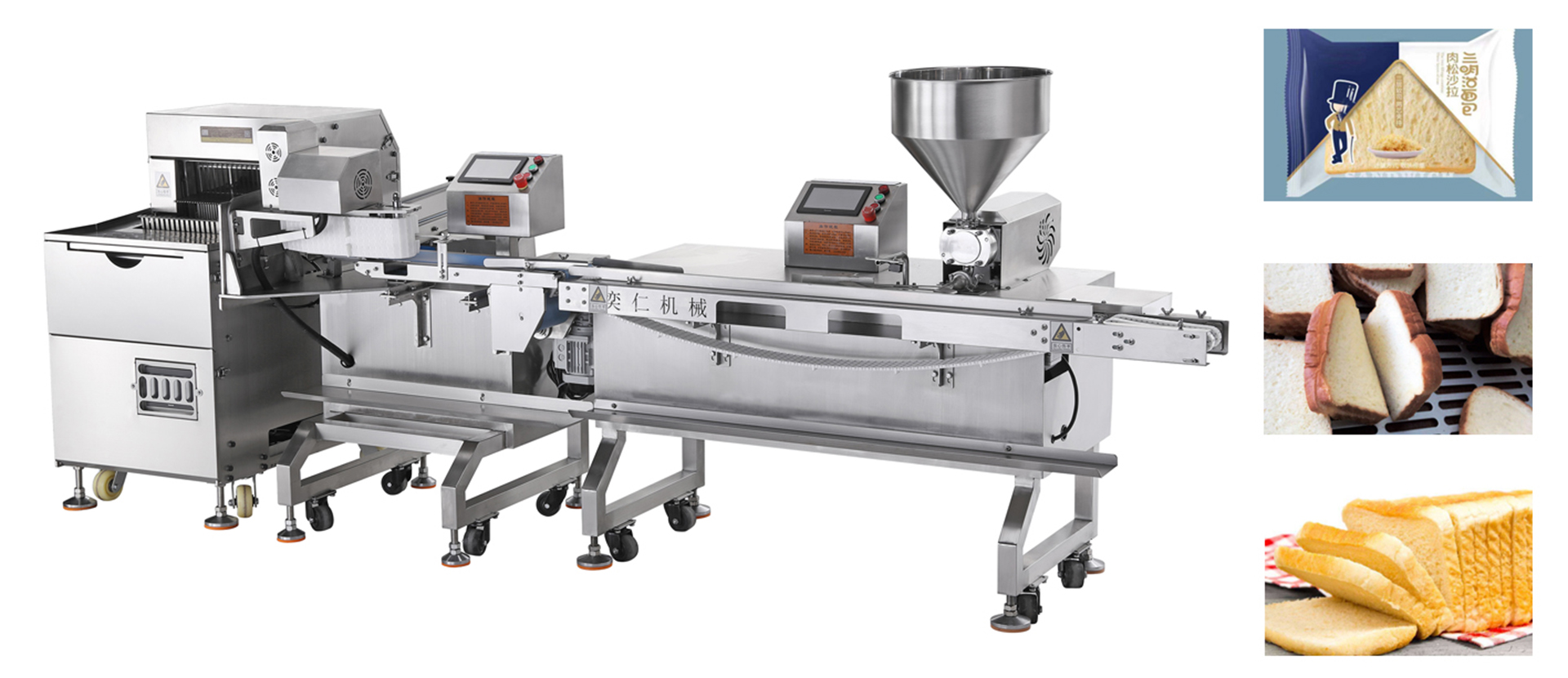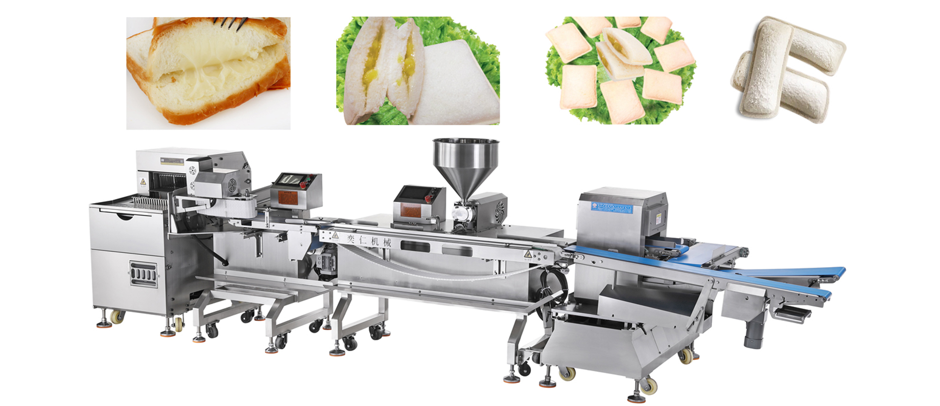 專業(yè)生產(chǎn)各種餅干夾心機、面包夾心機、淋漿機、油炸機等